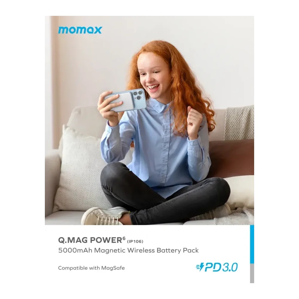The Momax Q.Mag Power 6 5000mAh Magnetic Wireless Power Bank combines portable power, wireless convenience, and stylish design. With magnetic attachment and reliable charging performance, it keeps your devices powered anytime, anywhere.
