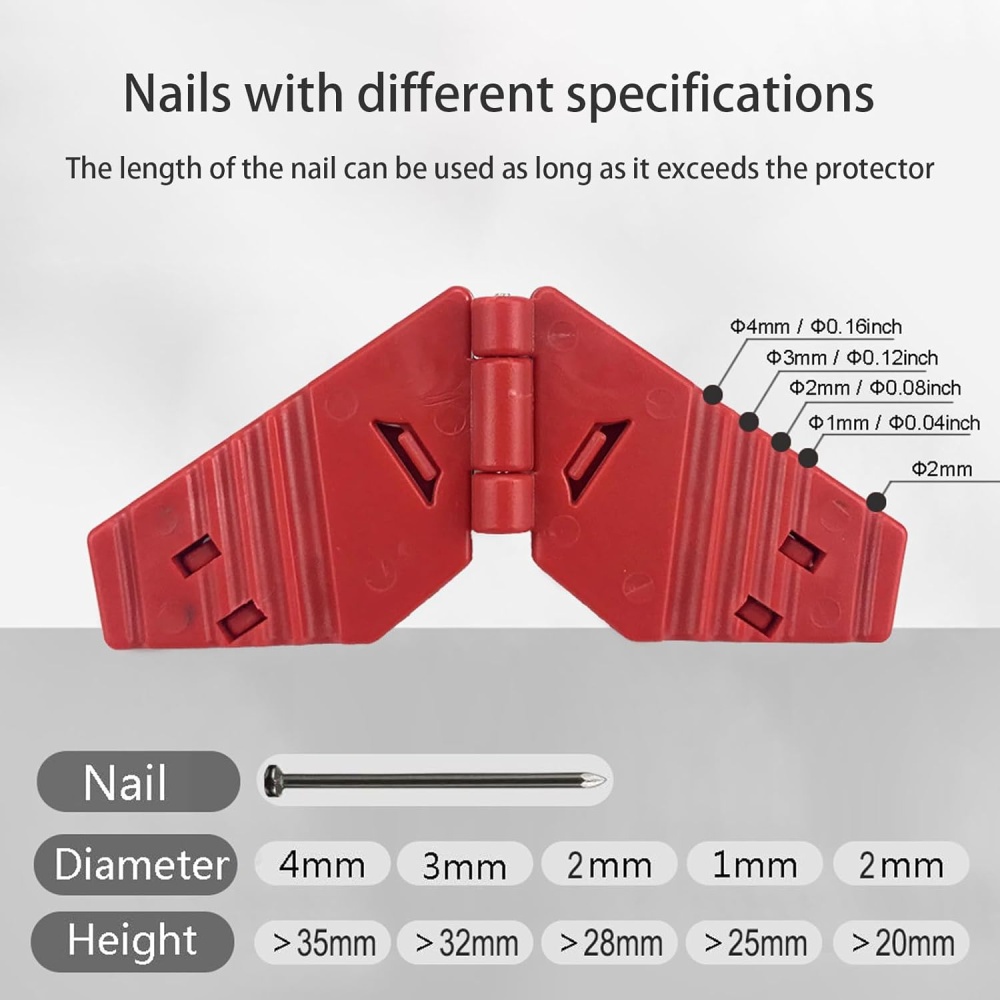 🔨 Nail Holder for Hammering – Safe, Efficient & Easy to Use Protects your fingers while hammering, reducing the risk of injury. Made from premium ABS engineering plastic for a strong and secure grip. Supports 4 nail sizes: 4mm, 3mm, 2mm, and 1mm. Simple and quick operation for effortless hammering. Suitable for homeowners, carpenters, and handymen. ✔ Improves safety by protecting fingers