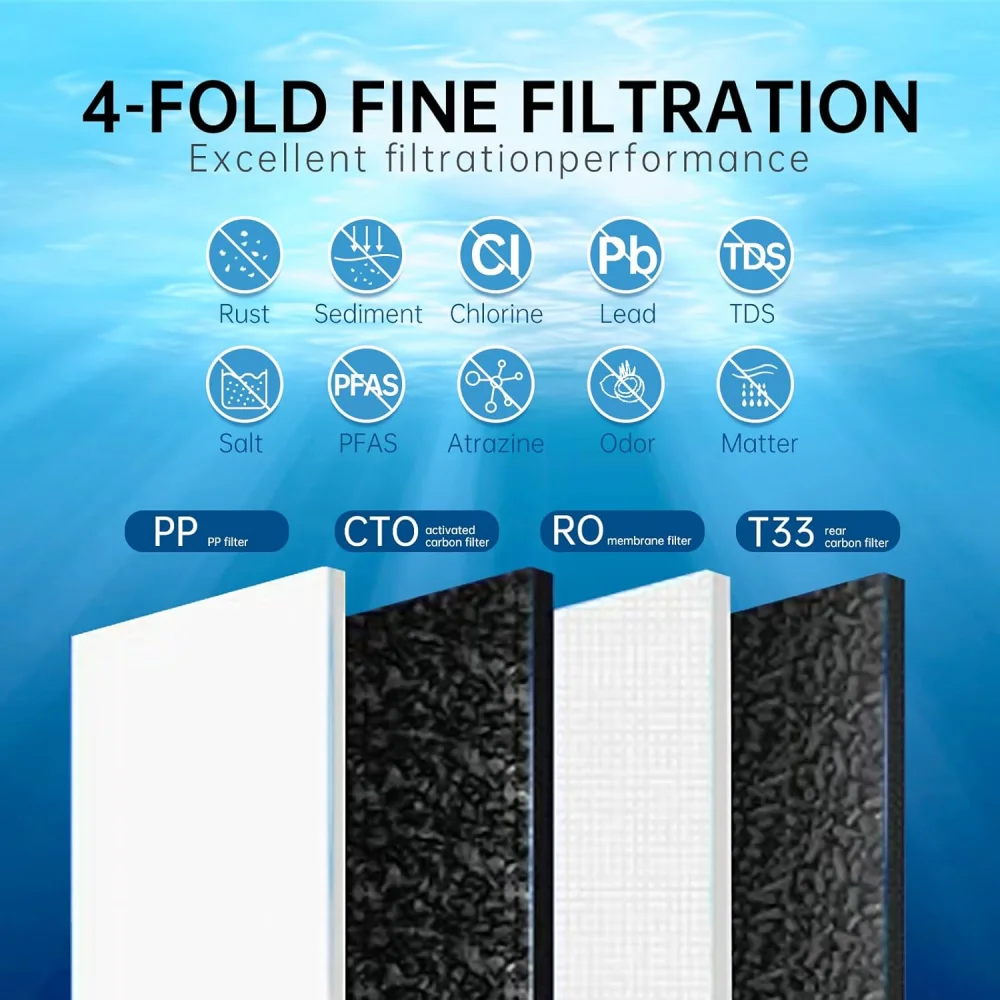 Filtration System: 5-Stage Reverse Osmosis (RO)