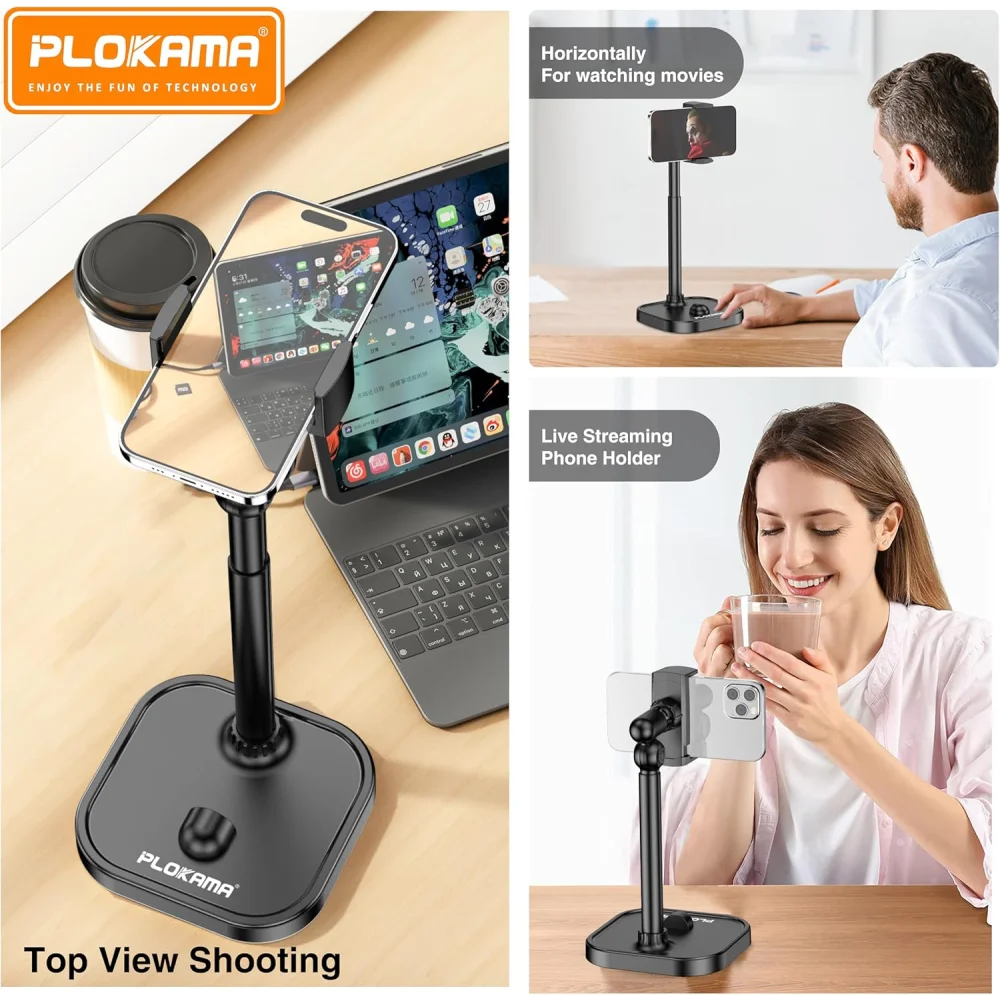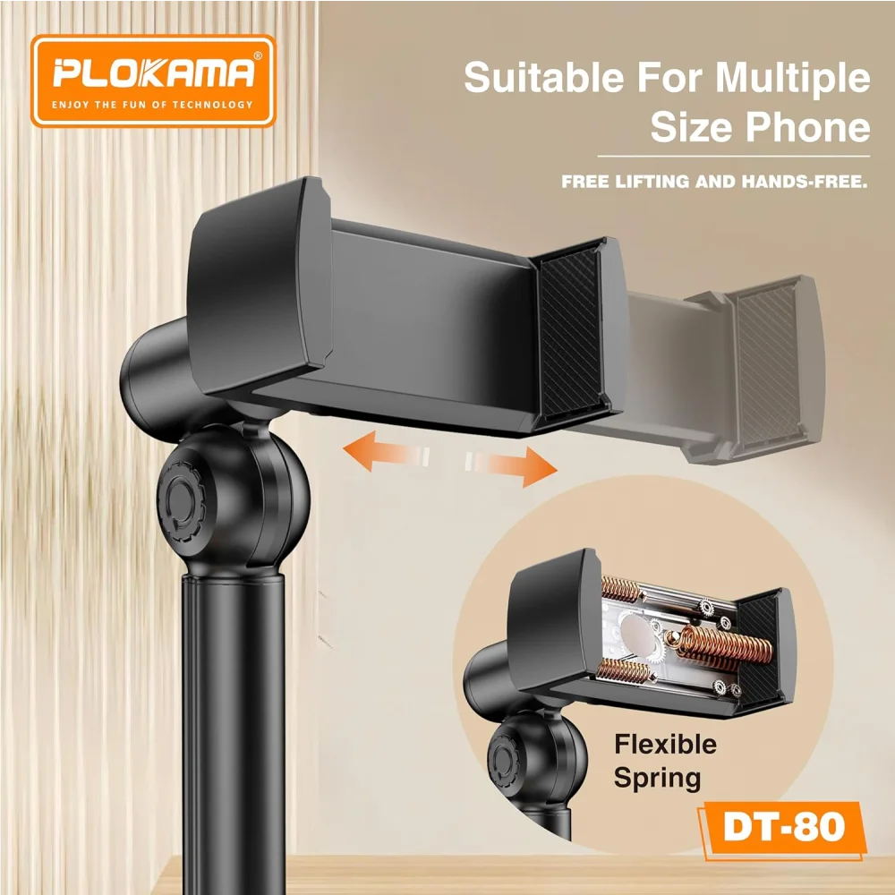 Experience hands-free convenience and rock-solid stability with the Plokama DT80 Phone Stand Holder. Built with premium materials and designed for flexibility, this stand is perfect for desk use, content creation, video calls, and overhead shooting.