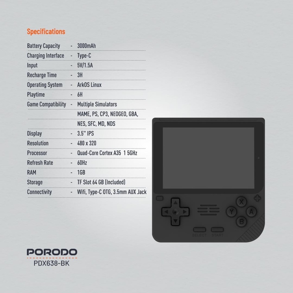 Porodo Gaming Retro Arcade Console - Black 🎮🕹️
