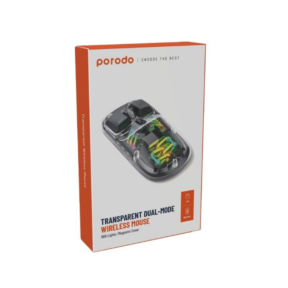 Experience smooth and versatile connectivity with this transparent black mouse. Effortlessly switch between 2.4G wireless and Bluetooth modes, making it perfect for laptops, desktops, and mobile devices. Its semi-transparent black design adds a modern and tech-savvy look to any workspace.