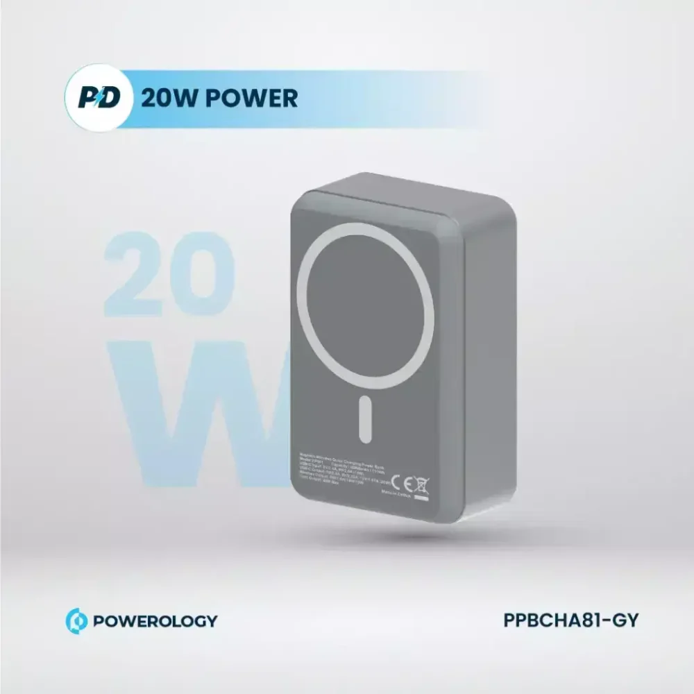 Stay powered wherever you go with the Powerology 30000mAh MagSafe Aluminum Power Bank. Designed for convenience and performance, this high-capacity power bank features fast charging, wireless MagSafe support, and a durable aluminum body. Perfect for travel, work, and everyday use, it ensures your devices stay charged anytime, anywhere.