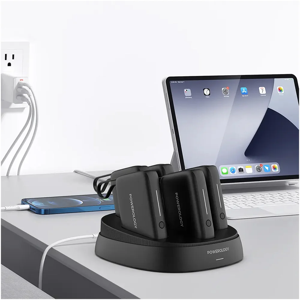 The Powerology ×5 10000mAh Power Bank Station is a powerful and convenient charging solution designed to keep multiple devices charged at the same time. It includes five high-capacity power banks, each equipped with a built-in Type-C cable for easy and efficient charging wherever you go.