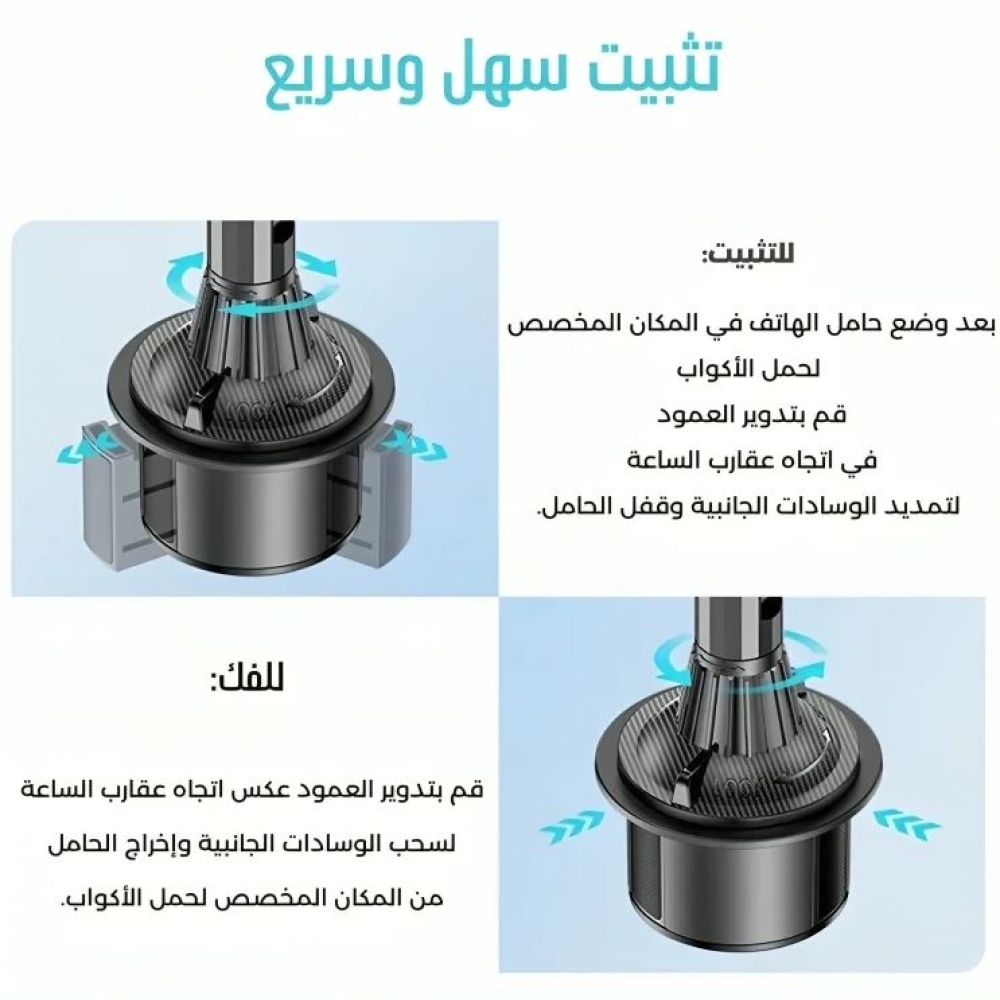 Easily adjust the base size to fit various cup holder sizes, with a 360-degree rotating ball joint for easy viewing.