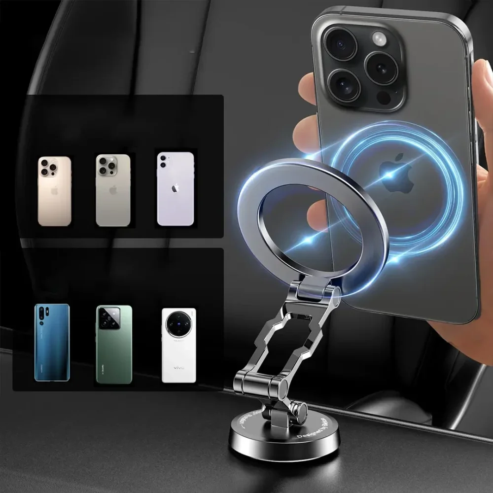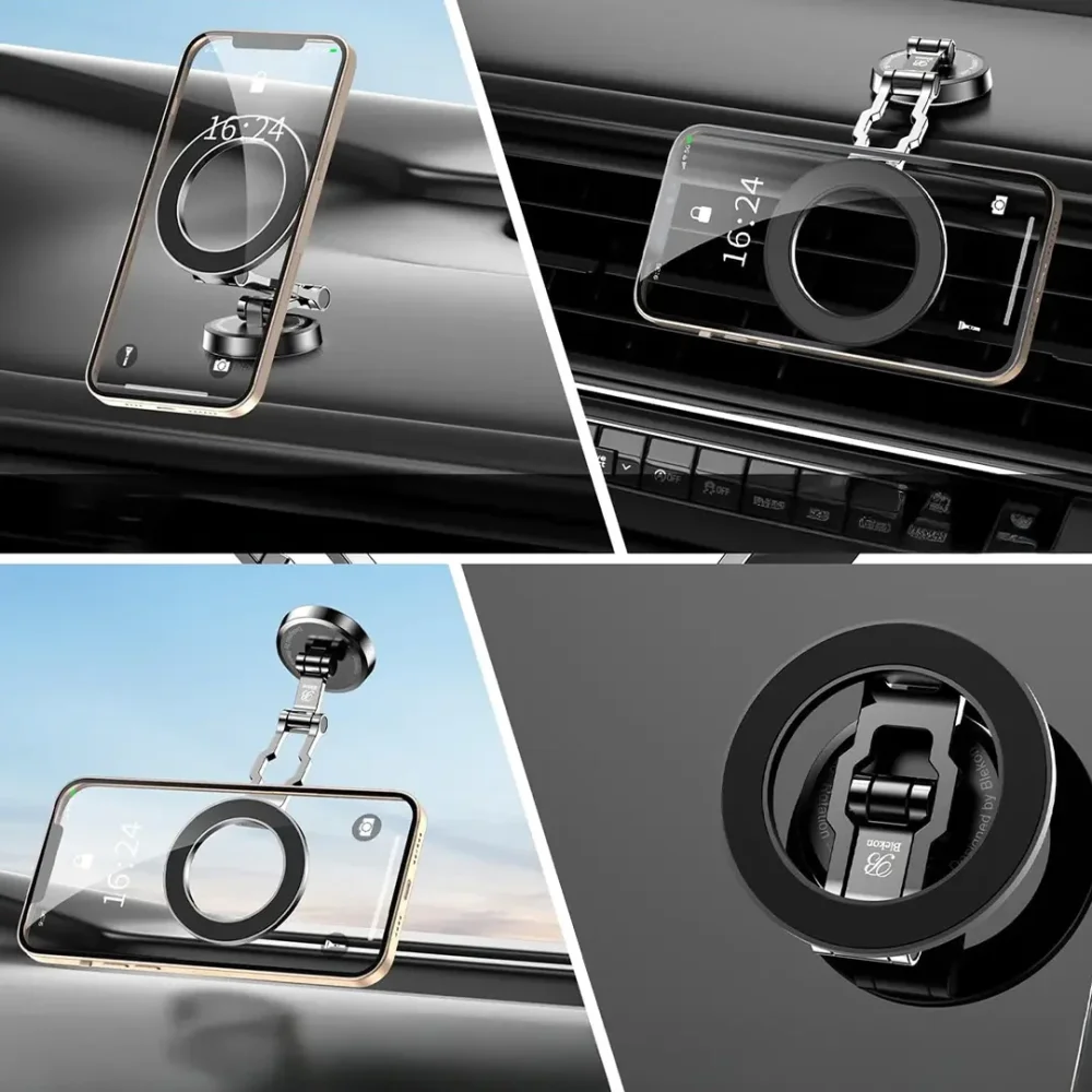 Equipped with MagSafe magnetic technology and a strong adhesive base, ensuring your phone stays firmly in place on various car surfaces without falling or leaving residue.