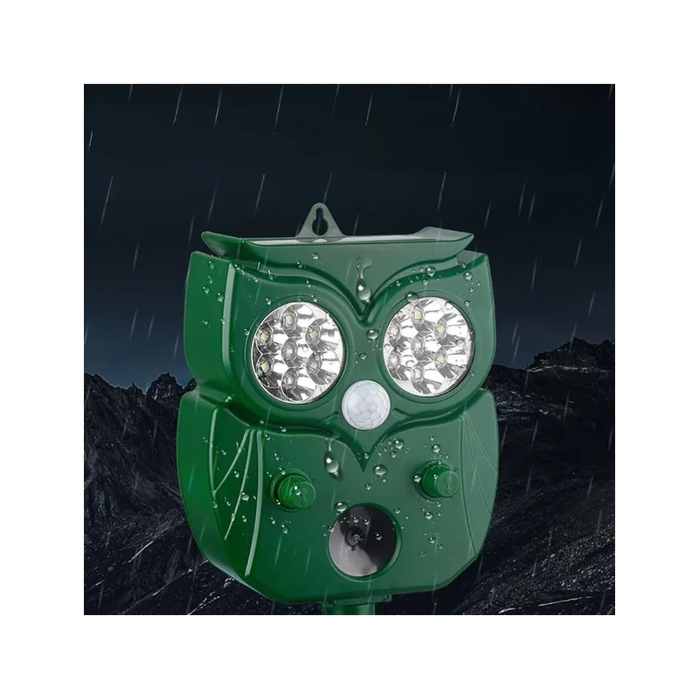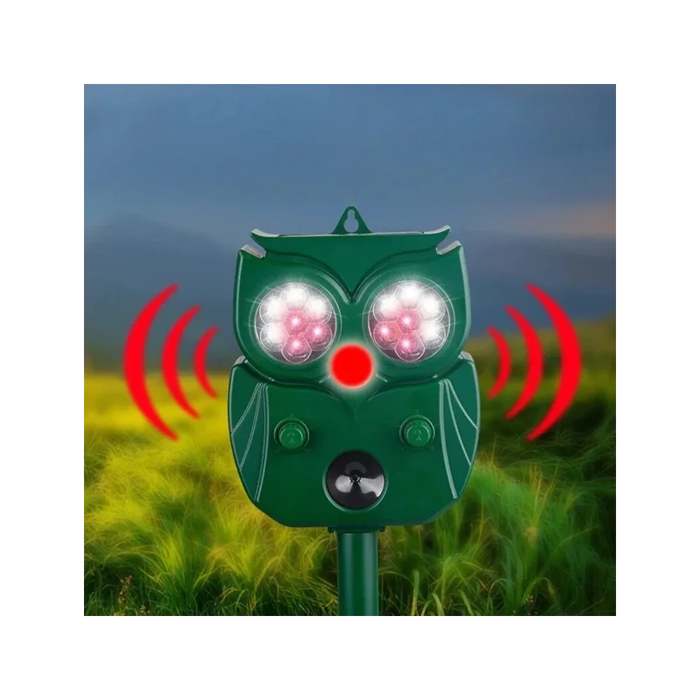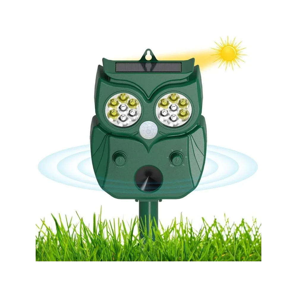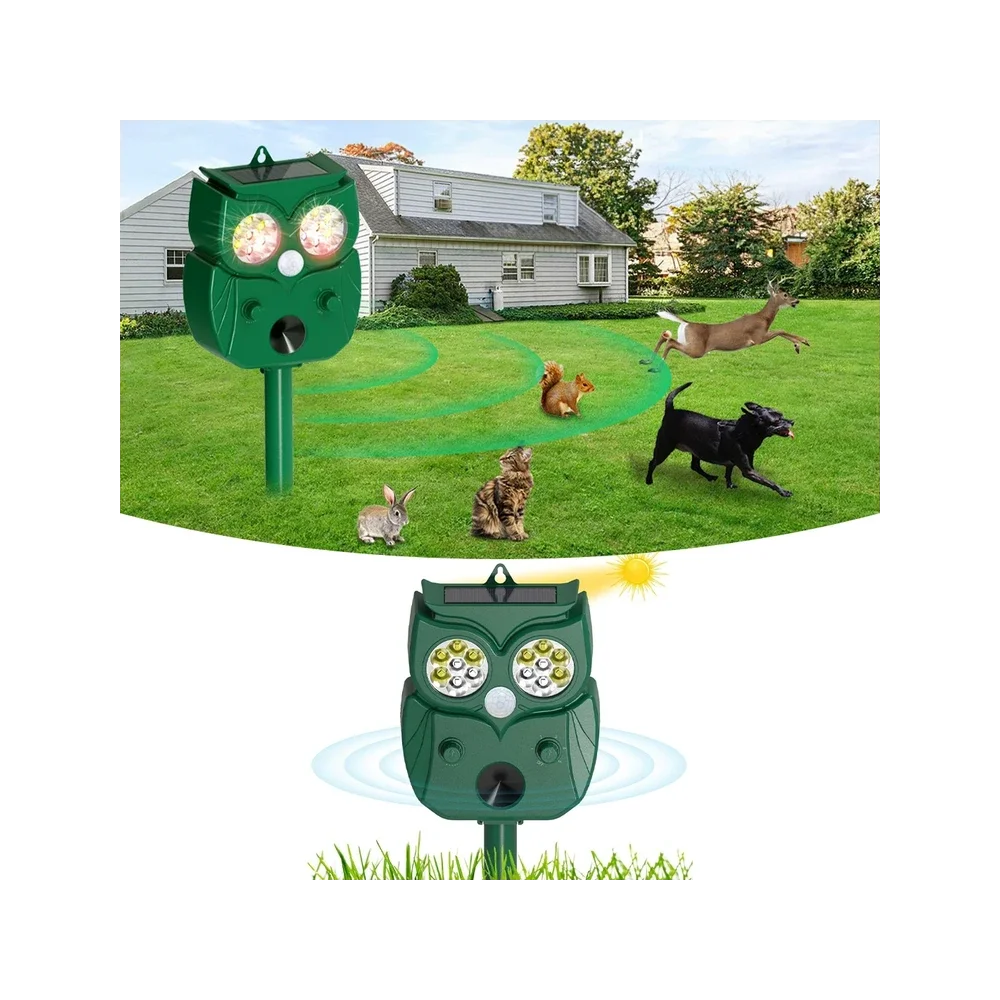 This advanced animal repeller uses ultrasonic sound + motion detection + LED flash to safely drive away unwanted animals from your property.