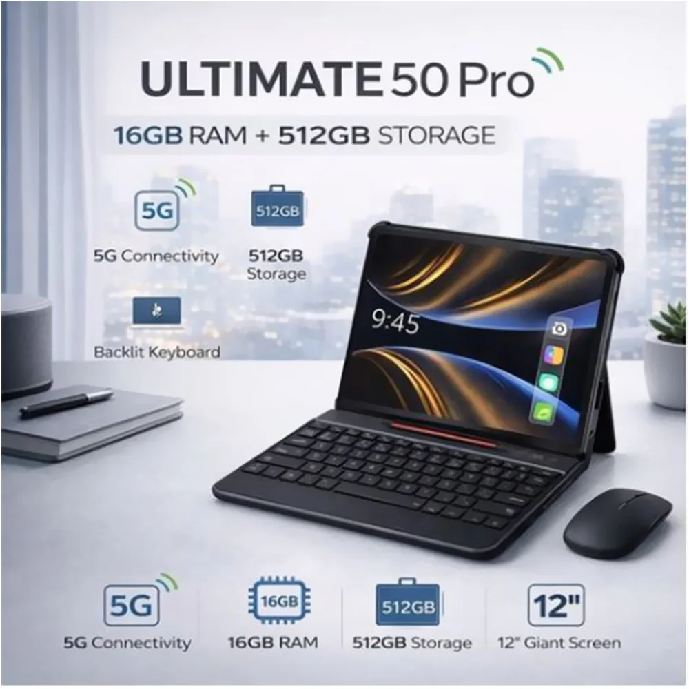 Experience power, speed, and style with the Ultimate 50 Pro 5G Tablet — built for seamless multitasking, entertainment, and productivity.