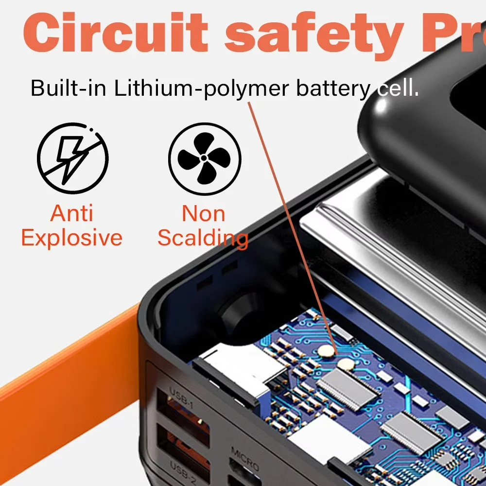 Stay powered anywhere with an ultra-high 50000mAh capacity, giving you multiple recharges for your smartphone and devices 🔋📱