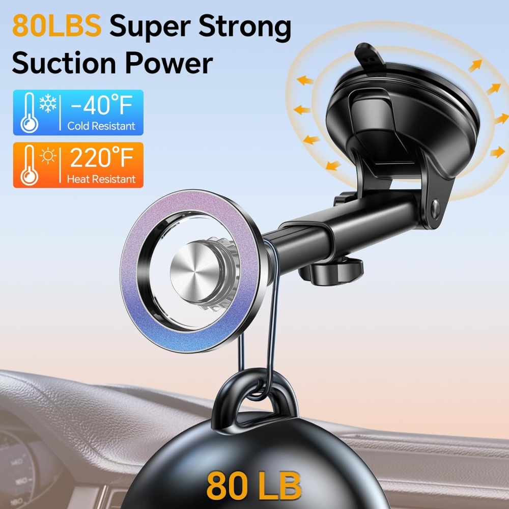 Equipped with a reusable, high-grip suction cup for stable dashboard or windshield mounting.
