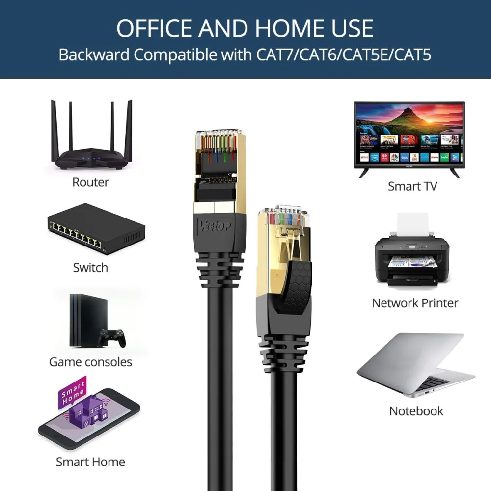 Works seamlessly with previous Ethernet standards like Cat 6 and Cat 7.