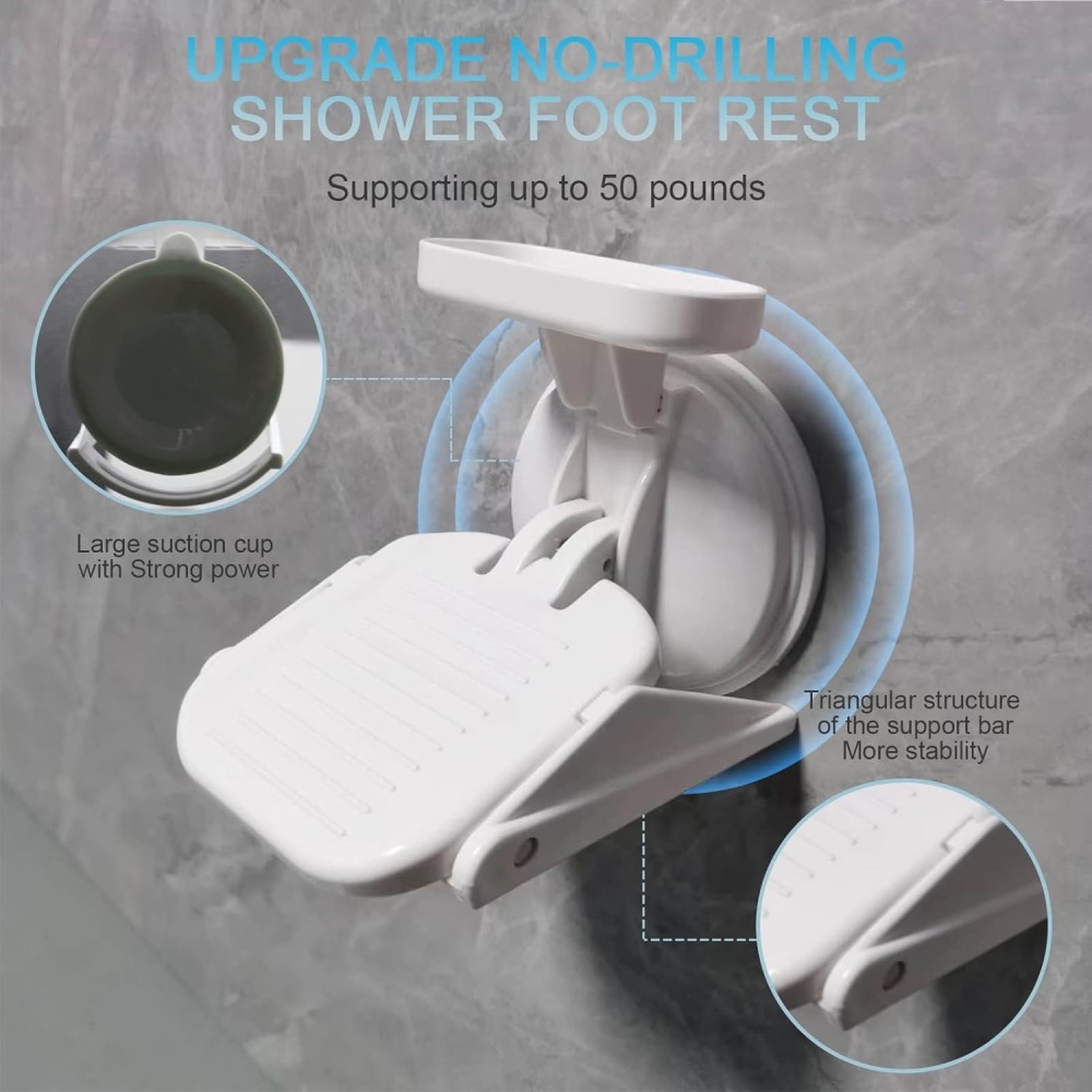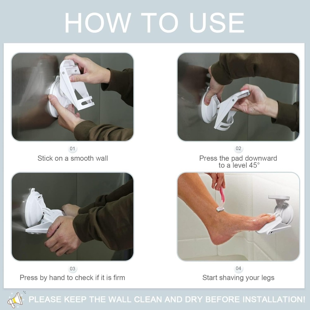 Features a triangular support structure, reinforced suction cups, wide treads, and anti-slip surface texture to ensure safe and steady leg support while shaving.