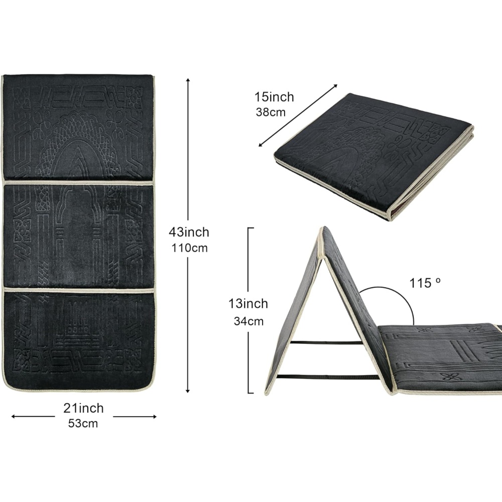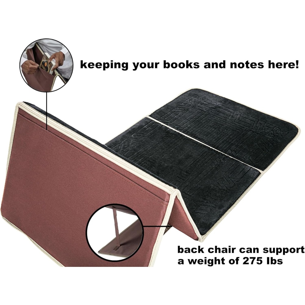 Prayer Rug Mat with Back Sitter Support - Black