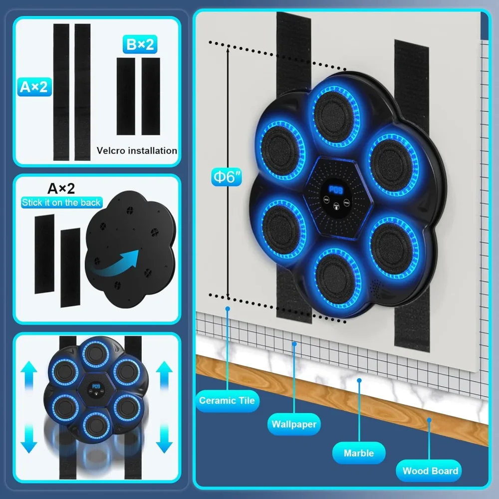 Built-in Bluetooth speaker lets you connect your phone and play your favorite music while training. LED lights guide your punches in rhythm for a more engaging workout.