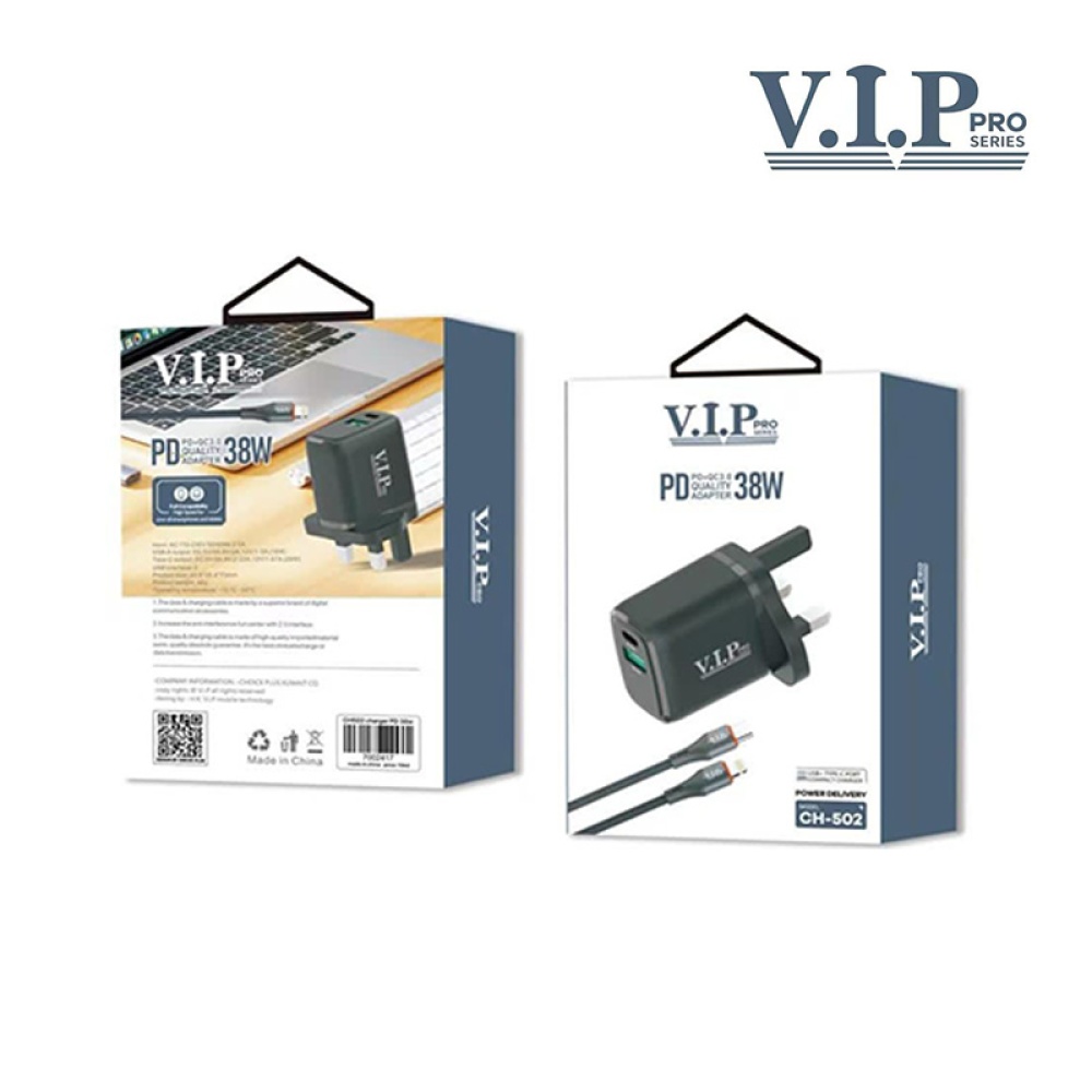 VIP CH-502 Pro Series – Power Delivery Compact Charger with Type-C to Lightning Cable